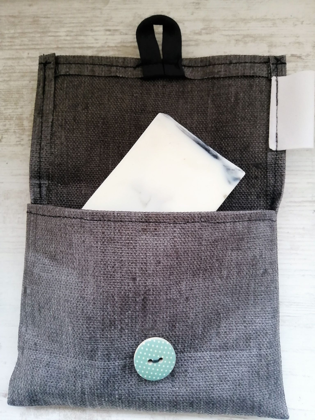 Pochette à savon en lin enduit sert à emballer les petits savons et gels douche 100ml.